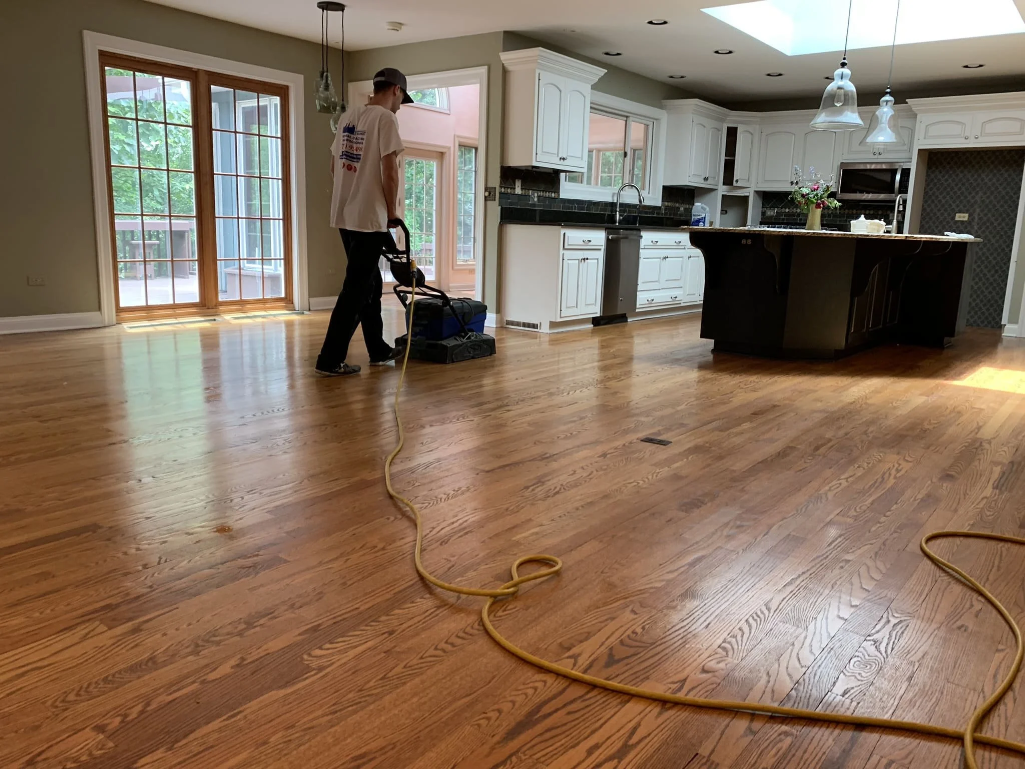 Patrick performing a deep hardwood floor cleaning for a client in Barrington, IL